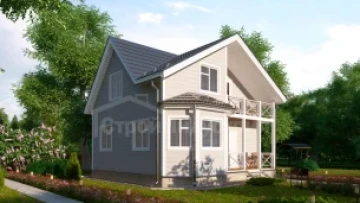 Проект дома «Зелёный луг» одна из разработок дизайнеров и архитекторов производственно-строительной компании «Идеи сруба». В качестве сырья используется профилированный брус. Это одноэтажная постройка общей площадью 43 кв. м. Проектом предусмотрено 2 комнаты. Вы поднимаетесь по широкой лестнице на крыльцо и попадаете в просторную кухню-гостиную. В комнате 6 окон, благодаря чему она светлая и просторная. Из кухни-гостиной два входа в совмещенный санузел и спальню. Проект подойдёт для семьи из 2 человек. Это современный проект дома для тех, кто ценит уют, комфорт и тепло.